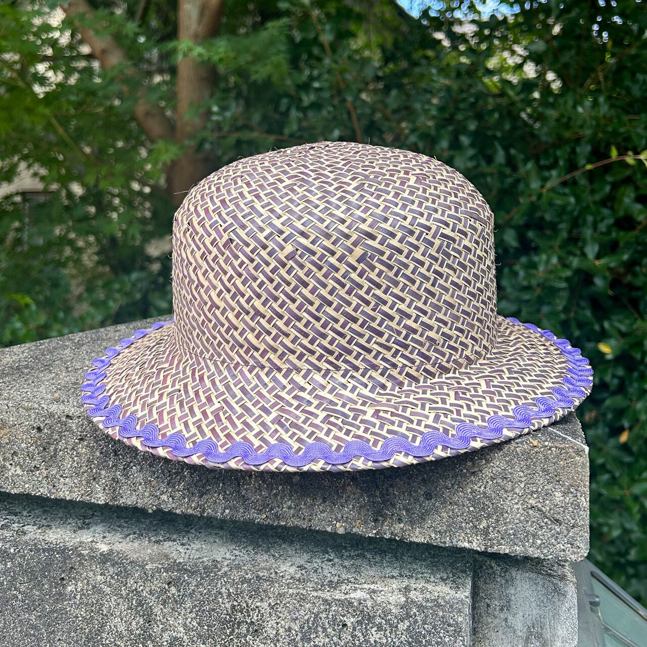 ラベンダーとナチュラルのミックス編みされたココナッツ素材を使用したハットです。