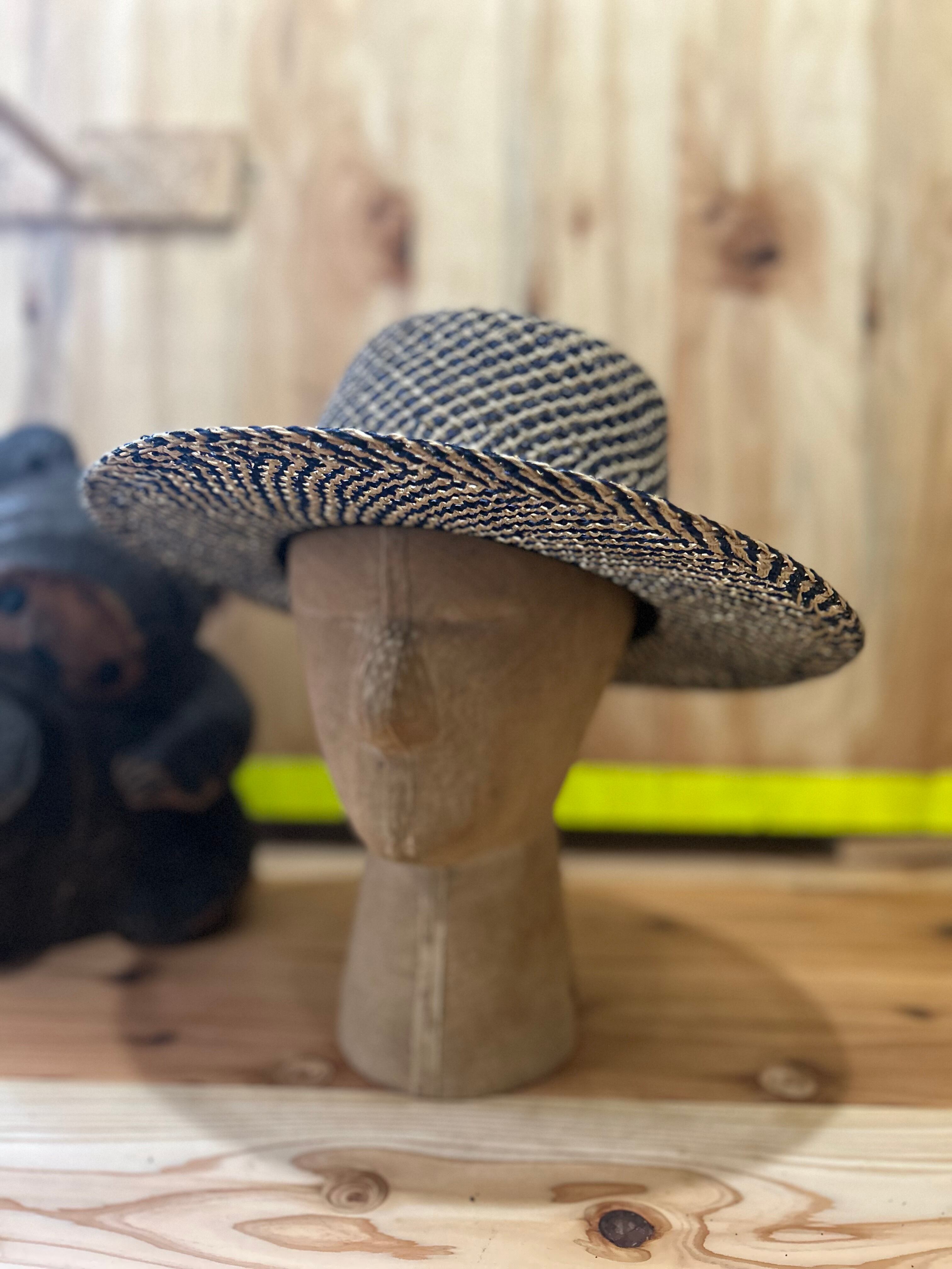 ネイビーとナチュラルの草を編み上げた素材で作ったポークパイ型のハットです。